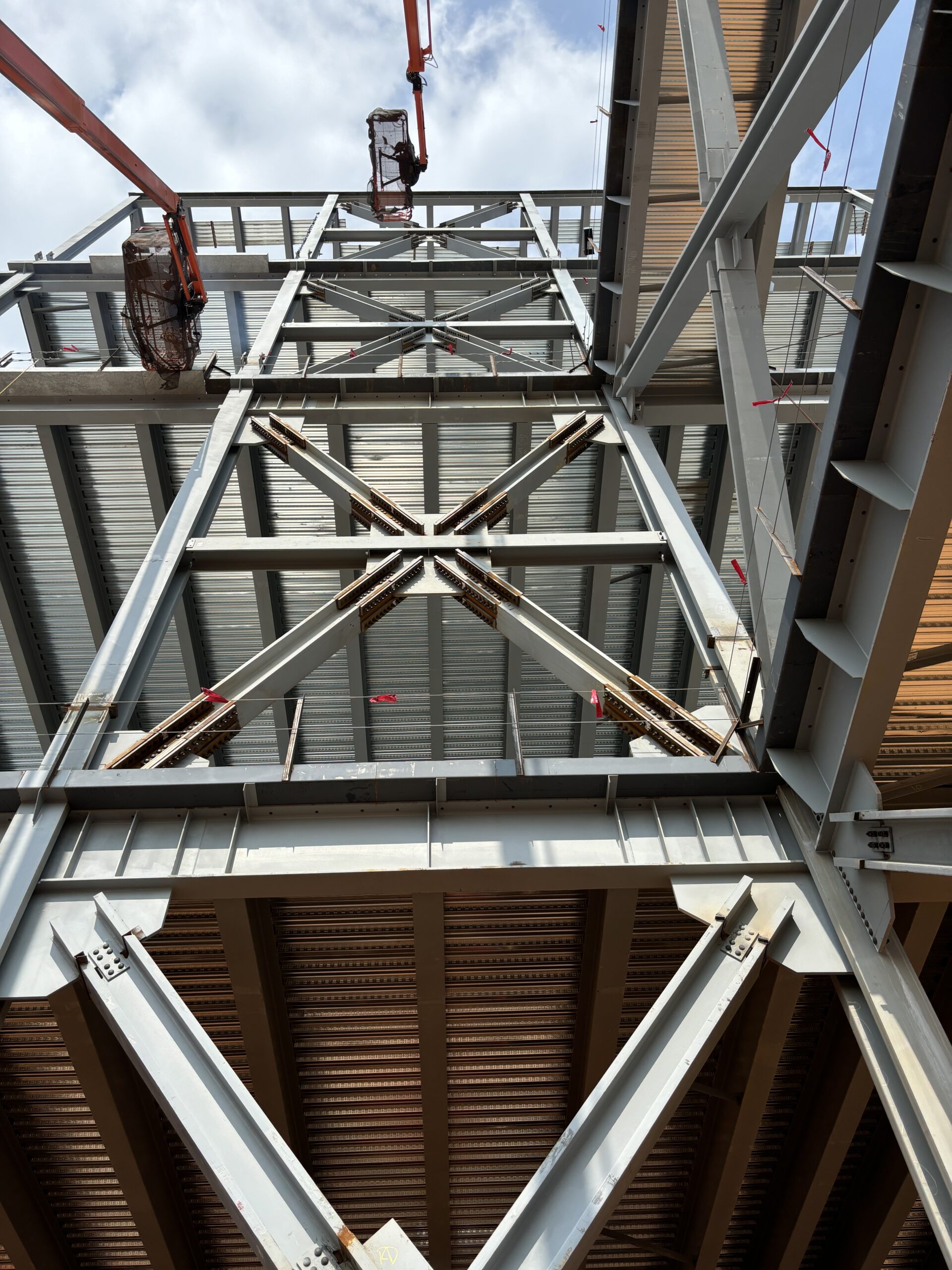 SSE’s connection engineering encompassed a wide range of structural elements, including heavy wide-flange vertical bracing, column splices, hollow structural section (HSS) connections, and a variety of moment, axial, and horizontal bracing members. The project also involved complex web-to-horizontal strut connections and high-risk structural integrity shear connections.