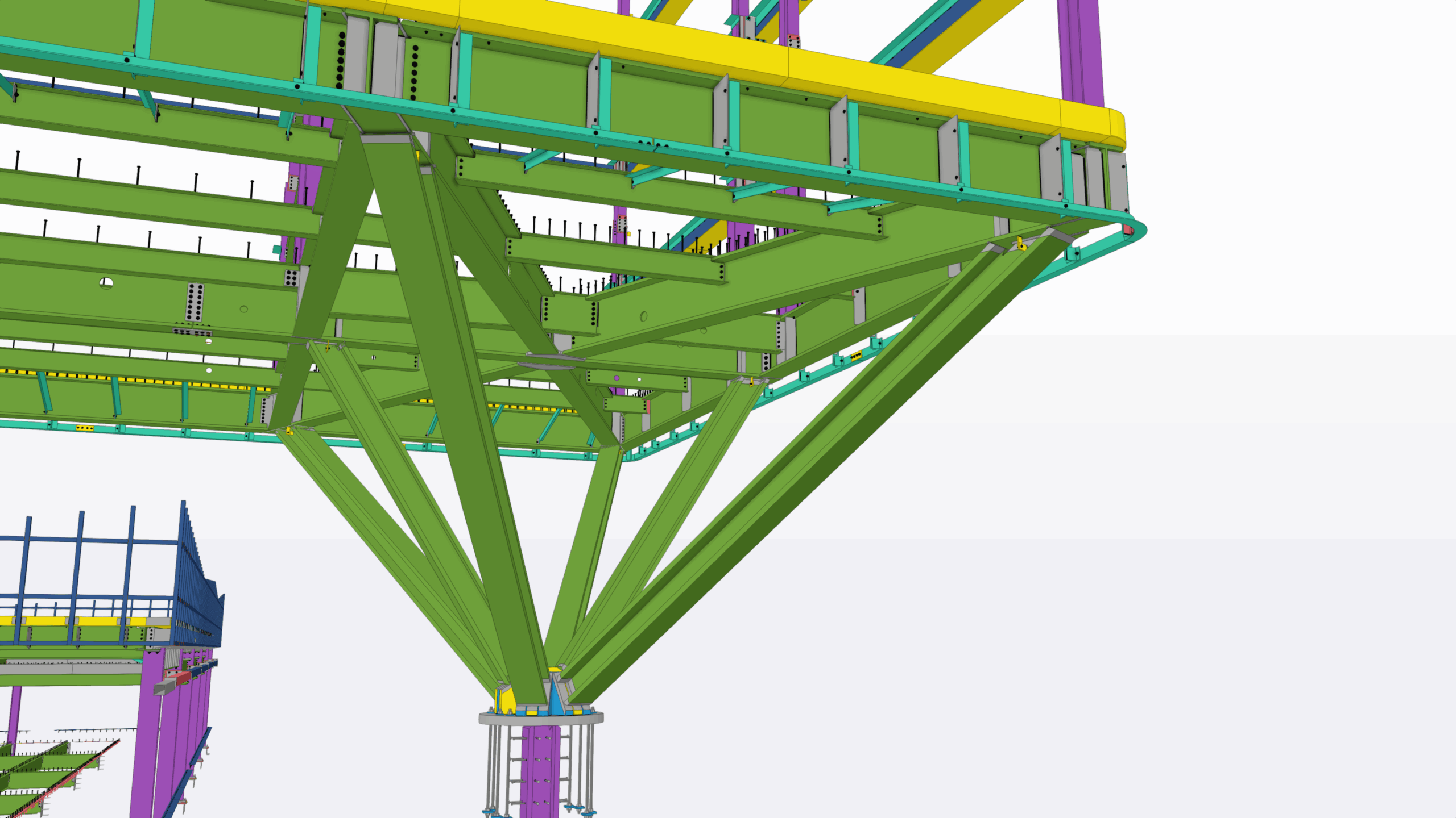 The connection design scope included a wide range of connection types, such as standard and non-standard shear connections, vertical and horizontal bracing, axial beam connections, moment connections, hollow structural section (HSS) beams, column splices, beam-over-column connections, and column post-to-beam connections.