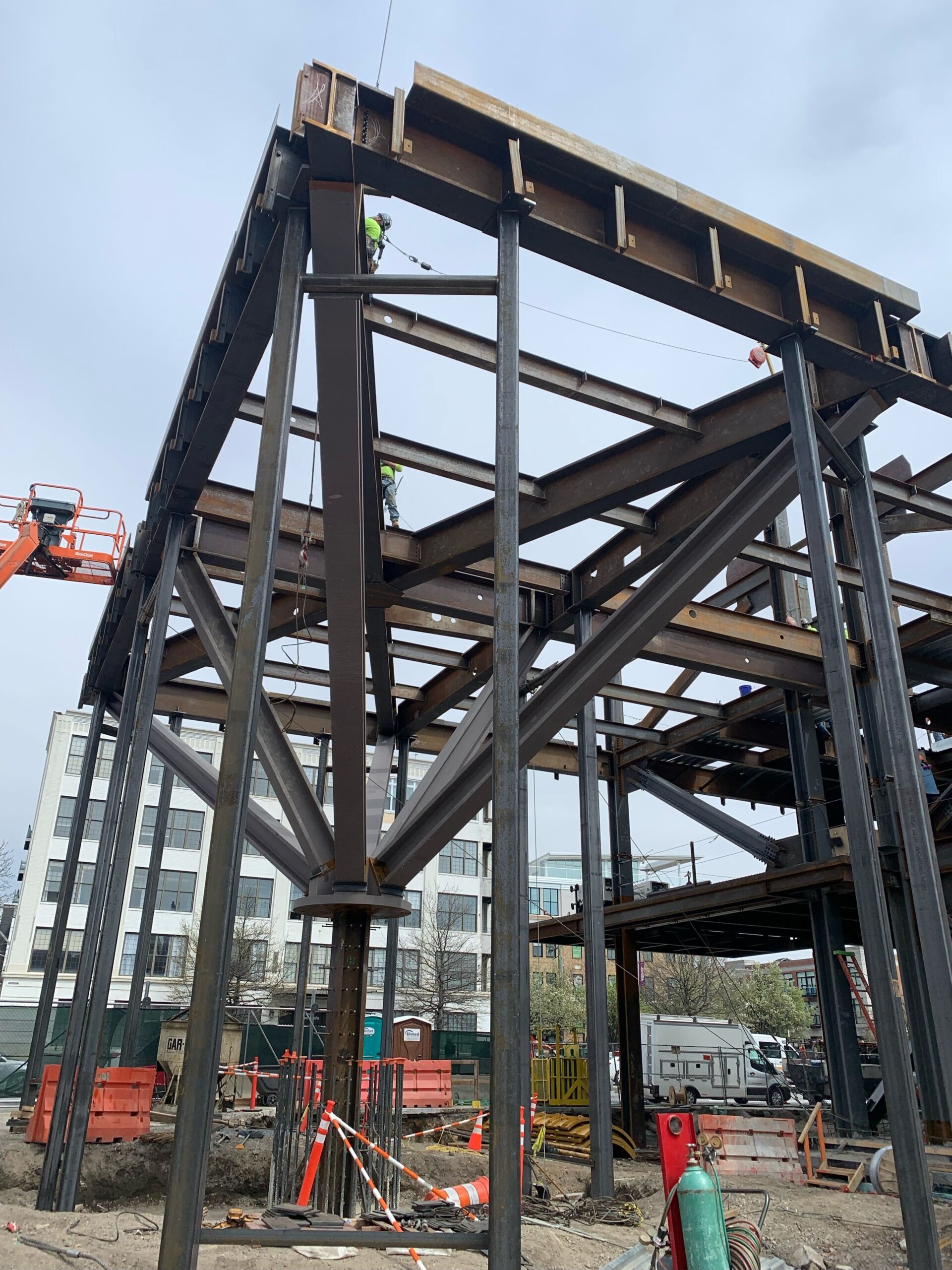Southern Steel Engineers provided delegated steel connection design for this 13-story apartment tower, which featured structured parking and 25,000 square feet of retail space on the ground floor. The building’s signature design included a tree-like column structure supporting one end of the L-shaped tower, presenting unique structural challenges that required carefully engineered solutions.